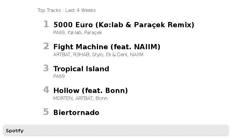 Display your Spotify top listened tracks